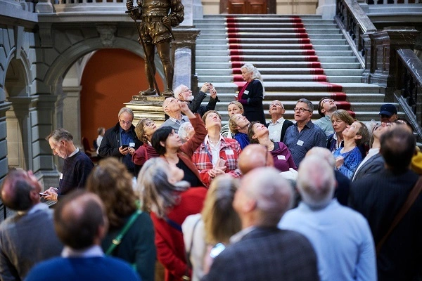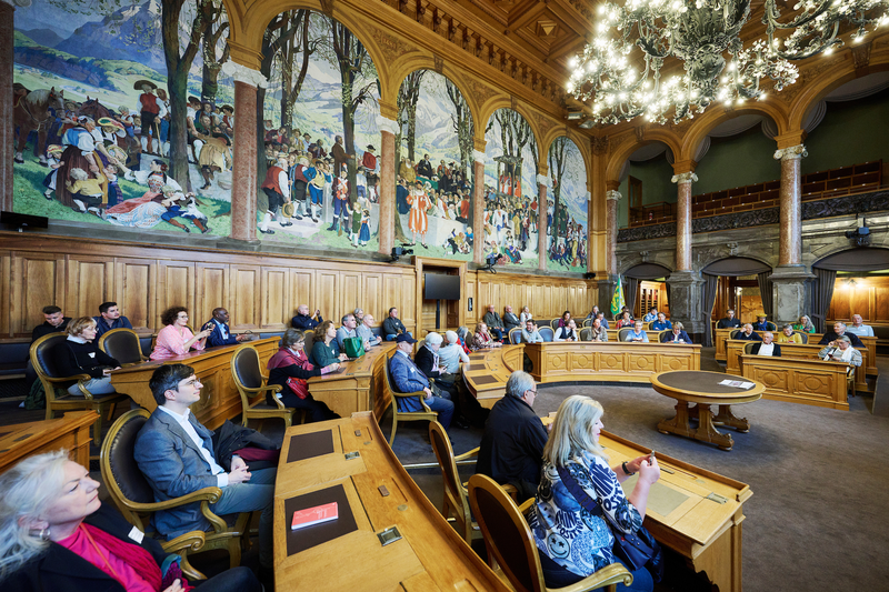 Am Samstag, 4. November, folgten 90 Mitglieder von UZH Alumni der Einladung zum Herbstanlass unter dem Motto «175 Jahre Bundesverfassung» nach Bern. Staatssekretärin und UZH-Alumna Christine Schraner Burgener hielt ein Impulsreferat zu den Perspektiven für das Migrationsland Schweiz, gefolgt von einem Podiumsgespräch zur Zukunft der Schweiz mit vier Parlamentarier:innen aus unseren Alumni-Reihen unter Moderation von UZH-Alumna Esther Girsberger. Nach dem Mittagessen in der «Galerie des Alpes» mit Gedanken zur Geschichte der Bundesverfassung von Historikerin und Alumna Denise Schmid folgte für einen Teil der Gruppe die Führung durch das Bundeshaus mit Nationalrätin Min Li Marti. Ein anderer Teil der Gruppe begab sich auf die Führung durch die Stadt Bern unter dem Titel «1848 – Bern wird Bundesstadt».