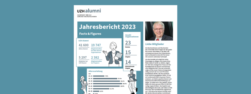 Als Absolventinnen und Absolventen der Universität Zürich tragen wir den guten Ruf unserer Alma Mater in die Welt. Wir sind ihre Botschafterinnen und Botschafter, denn schliesslich ist die UZH für immer mit unserem Lebenslauf verknüpft. Die Mitgliedschaft bei UZH Alumni ist Ausdruck unserer Verbundenheit zur Universität Zürich und ermöglicht dem Verein, zahlreiche Projekte an der UZH finanziell zu fördern. Der Jahresbericht 2023 zeigt einige Highlights.