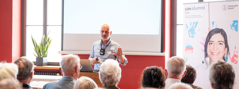 Zweimal pro Jahr lädt UZH Alumni die Unterstützer:innen des Fonds zur Förderung des akademischen Nachwuchses (FAN) zu einem Anlass ein, an dem sie sich mit von ihnen geförderten Nachwuchswissenschaftler:innen austauschen können. Beim diesjährigen Sommeranlass im Restaurant Uniturm stellten die Juristin Corina Heri und der Mediziner Tobias Weiss ihre vom FAN unterstützten Projekte vor. Als Hauptredner beantwortete UZH-Philosophieprofessor Francis Cheneval die Frage, ob die in Kants Schrift «Zum Ewigen Frieden» formulierte Vision eines dauerhaften Friedens eine vergebliche Hoffnung sei.