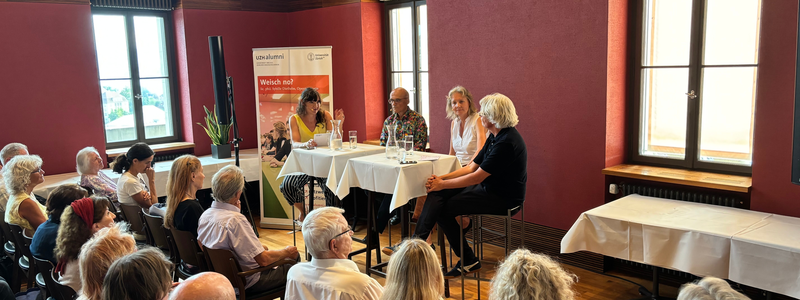 Der Talk im Turm ist eine gemeinsame Veranstaltungsreihe von UZH Alumni und UZH Kommunikation, die viermal im Jahr im Restaurant UniTurm stattfindet.