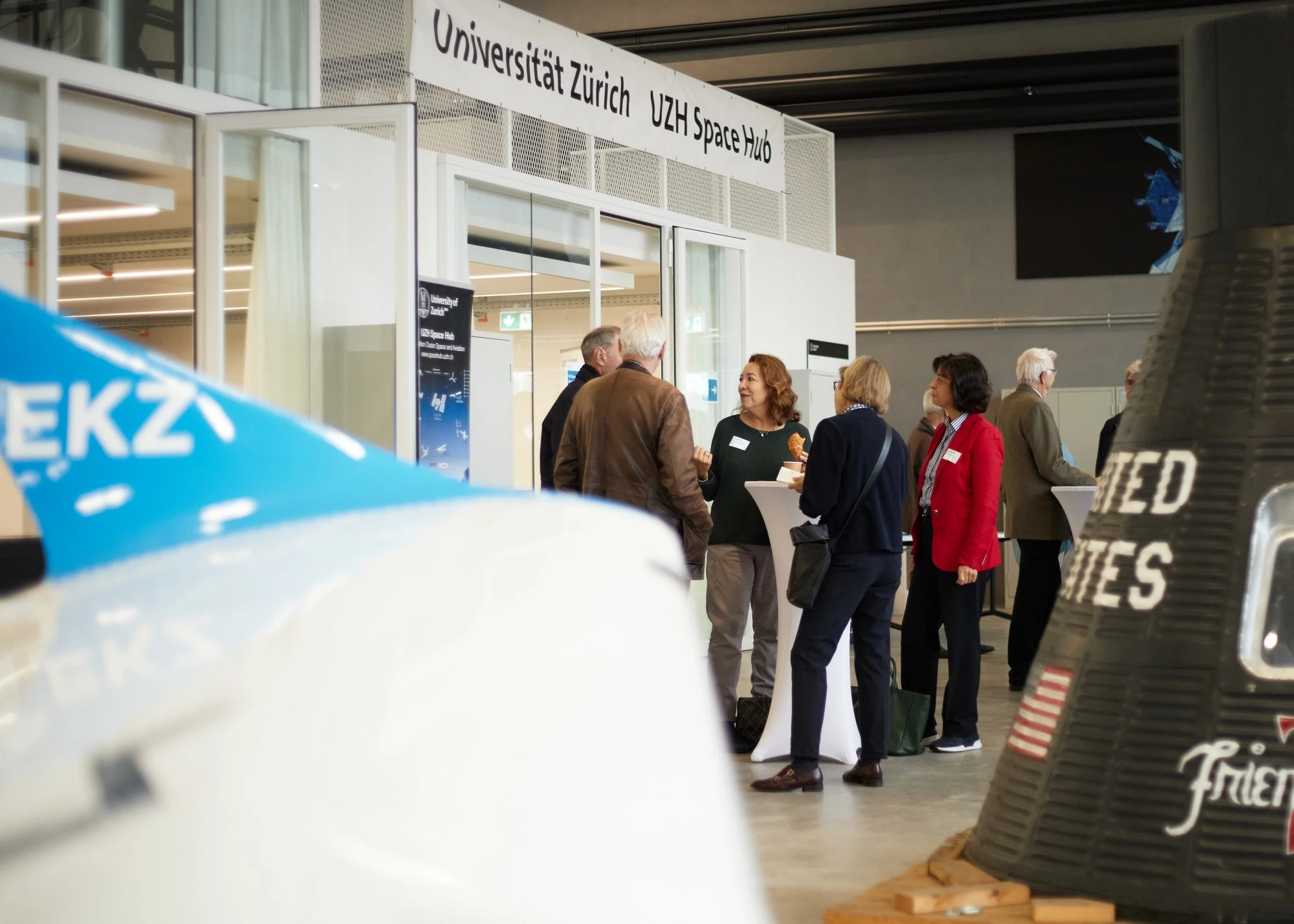 Traditionell am letzten Samstag im Oktober trafen sich 65 Mitglieder von UZH Alumni zum Herbstanlass – diesmal im neu umgebauten Hangar des UZH Space Hubs im Innovationspark Zürich am Flughafen Dübendorf. Der UZH Space Hub präsentierte sich an seinem neuen Standort mit verschiedenen Start-ups, Partnern und Wissenschaftler:innen und gab faszinierende Einblicke in die Zukunft der Weltraumnutzung.