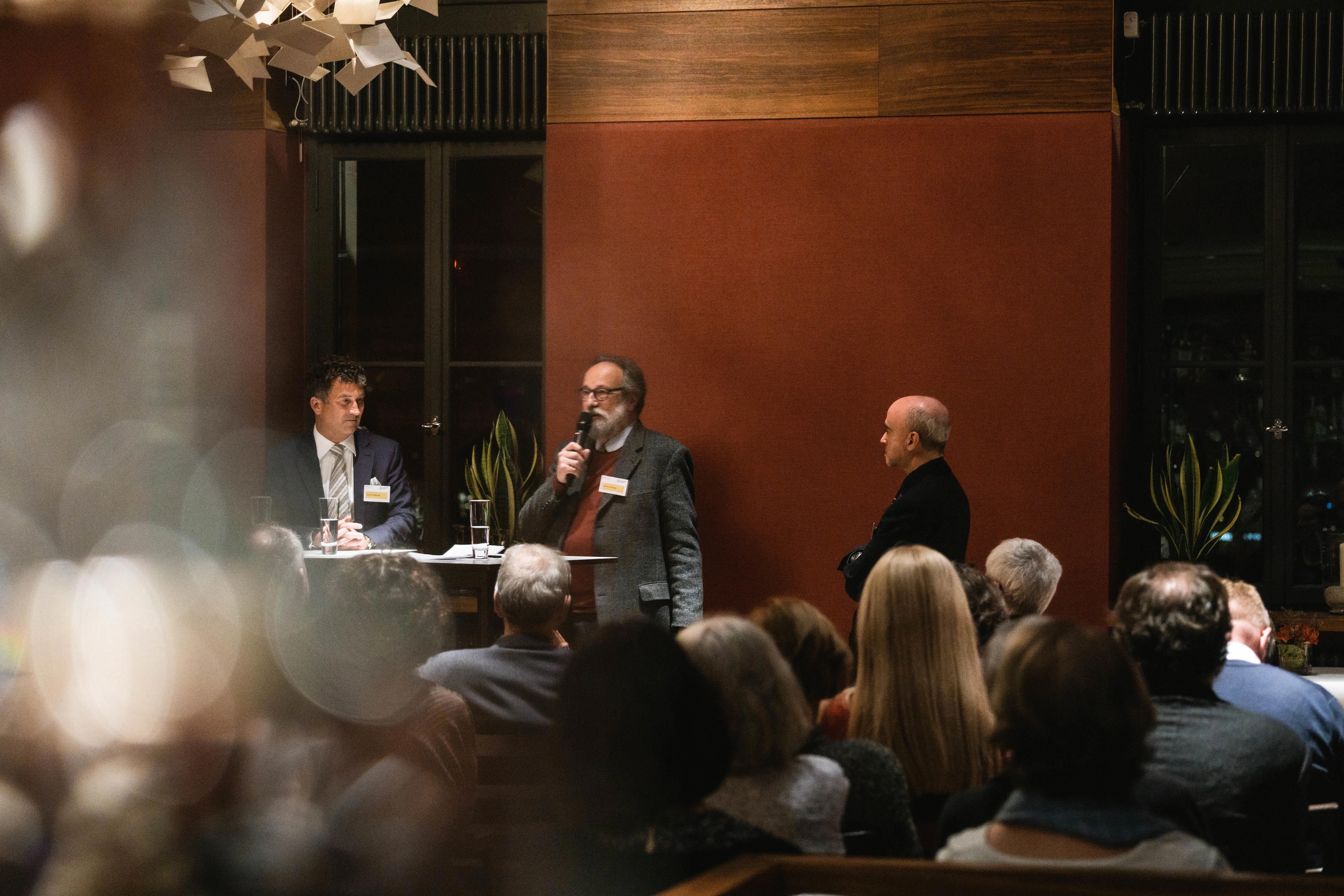 Markus Wyler moderierte das Gespräch mit vier Ehemaligen unter dem Titel «30 Jahre nach der grossen Wende von 1989 – und was aus uns Alumni geworden ist». Die ehemalige Russischlehrerin Dr. Elisabeth Goslicka, die aus dem Schweizer Fernsehen bekannte Dokumentarfilmerin Helen Stehli Pfister, der im Bankenbereich tätige Nicolas Oesinger sowie der ehemalige Schweizer Botschafter in Moskau und Tiflis, Dr. Lorenzo Amberg berichteten von ihrem beruflichen Werdegang und ihrer persönlichen Verbindung zu Osteuropa vor und nach der Wende. Sie teilten die Faszination für die exotischen Sprachen und Literaturen am Slavischen Seminar und berichteten von spannenden Auslandaufenthalten etwa in Berlin Anfang der 1990er, in Krakau und in Moskau.