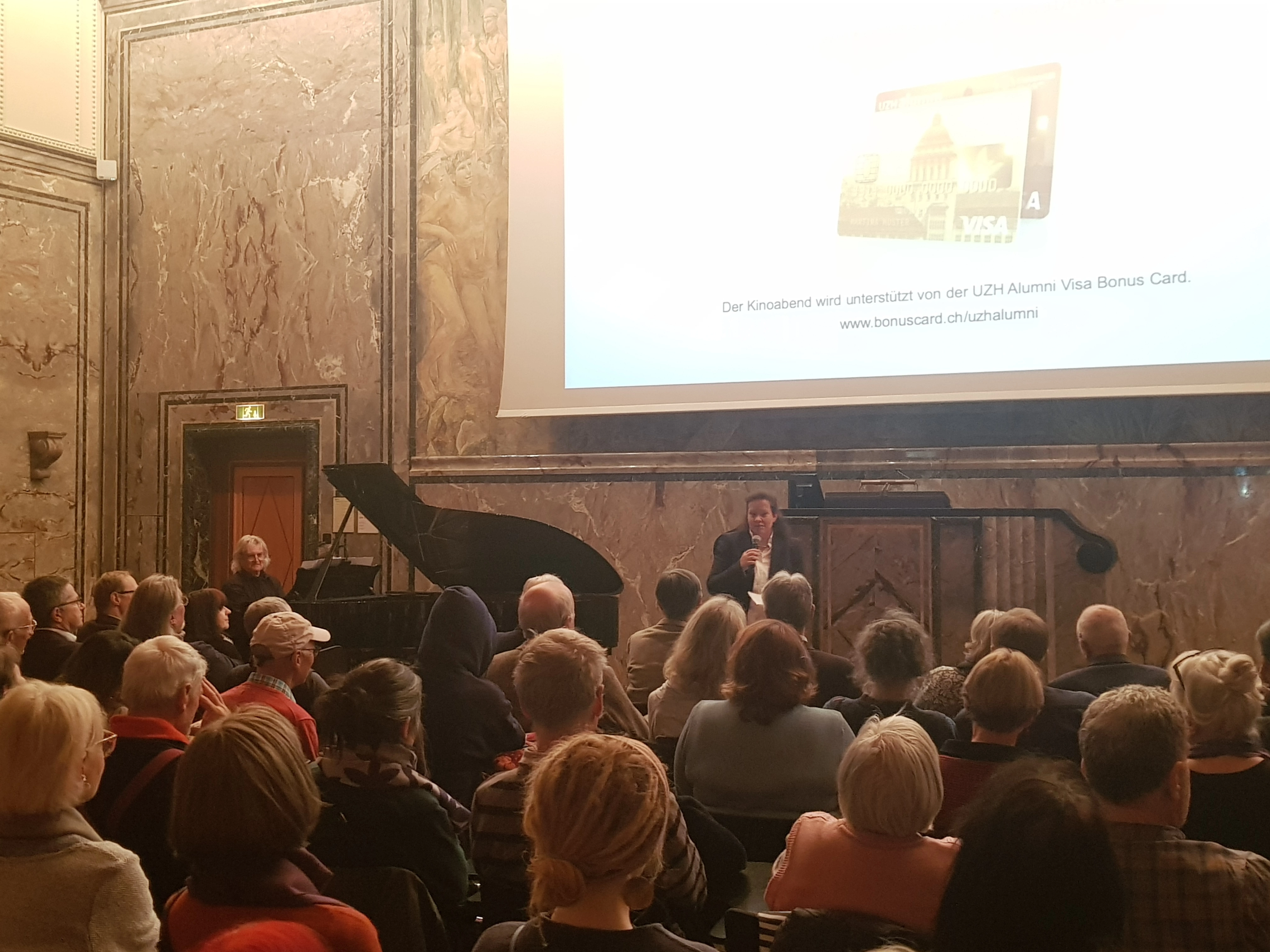 Bis auf den letzten Platz besetzt war die Aula der Universität Zürich, als Präsident Peter Isler rund 280 Gäste zum traditionellen Kinoabend am vergangenen Freitag begrüsste. Claudia Rütsche, im Vorstand von UZH Alumni, führte das Publikum in den Film «Die Frau, nach der man sich sehnt» ein, der von einer abenteuerlichen Dreiecksbeziehung handelt.