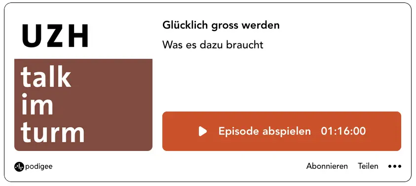 Wie können Kinder und Jugendliche glücklich gross werden und mit welchen Herausforderungen werden sie und ihre Eltern konfrontiert? Diese Fragen diskutierten die Neuropsychologin Nora Raschle und der Entwicklungspädiater Oskar Jenni am Talk im Turm. Wer die ausgebuchte Veranstaltung verpasst hat, findet das Gespräch jetzt als Podcast zum Nachhören.