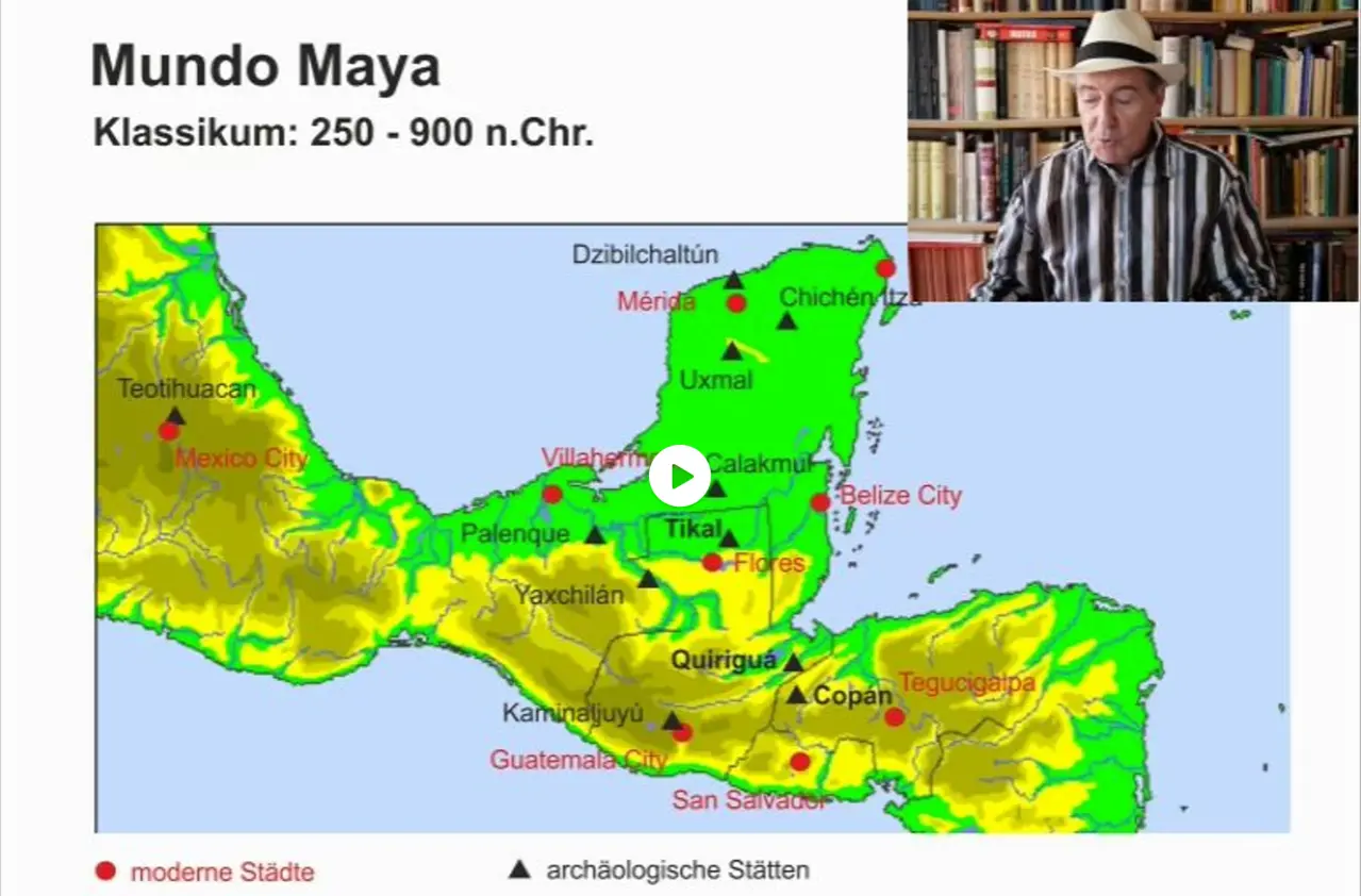 Da Reisen im Moment nicht möglich sind, nimmt uns Dr. Peter Hassler, UZH-Alumnus und Leiter der im Herbst 2020 geplanten Alumni-Reise nach Mesoamerika, mit auf einen virtuellen Ausflug in die Welt der Mayas. Im Video erzählt er von ihrem Schöpfungsmythos und ihrer Sterndeutung.