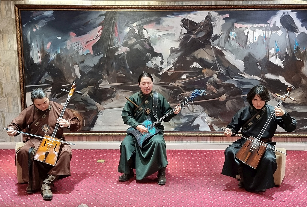 Der Ausflug zur Chinggis Khan Statue gab der Reisegruppe am nächsten Tag einen Einblick in die grosse Bedeutung dieses ehemaligen Herrschers für die heutige Mongolei. Beim Mittagessen unterhielten uns junge Musiker mit zwei traditionellen, mongolischen Musikstilen: Pferdekopfgeige und Kehlkopfgesang – auch dies eine unerwartete Einlage, die wir sehr genossen. Die Fahrt durch den Terelj-Nationalpark mit seinen wunderschönen Gesteinsformationen und der Spaziergang hinauf zu einem buddhistischen Meditationszentrum rundeten einen ereignisreichen ersten Tag ab.