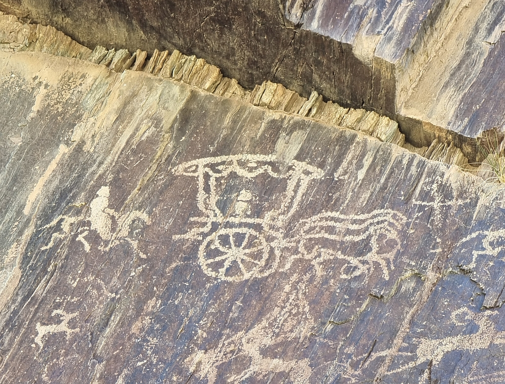 Die Fahrt durch die Schlucht und der Besuch von Yaman us waren zwar eindrücklich – speziell die Felszeichnungen aus der Bronzezeit begeisterten – hingegen war an ein Zelten auf der Hochebene nicht zu denken. Ein starker Sturm war aufgekommen und es musste eine andere Lösung gefunden werden. Hier kam das Improvisationstalent von Toogoo zum Tragen: Er bot der Gruppe ein frisch renoviertes Haus in Altai sum an, dessen Besitzer noch nicht eingezogen war. Auf diese Weise konnten auch die in der Zwischenzeit erholten Teilnehmerinnen aus dem nahen Hotel wieder zur Gruppe stossen und bei einem Khorkhog, Vodka und Gesang den letzten Abend in der Gobi B feiern.