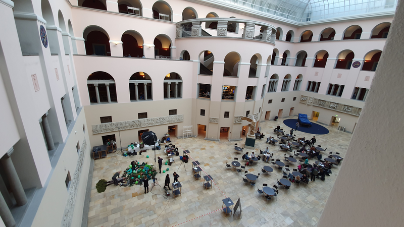 Das Set im Lichthof sorgte für Aufsehen: Absperrband, ein fünf Meter hoher Blitzschirm, Garderobe, Maske und eine abenteuerliche Kamerakonstruktion über die Brüstung im 3. Stock. Dazu acht engagierte Mitglieder der Alumni-Organisationen, die tapfer auf dem kalten Boden ausharrten, bis das Bild im Kasten war. Über 40 Mitglieder hatten sich auf den Aufruf letzten November zum Fotoshooting für die neue Image-Kampagne beworben. Herzlichen Dank an dieser Stelle an Gabriela Wyss, Sindhya Bergamin, Klaus Schiller-Stutz, Verena Niederberger, José Manuel Rodriguez, Awin Tavakoli, Lara Kojic und Reik Leiterer für eure Teilnahme.