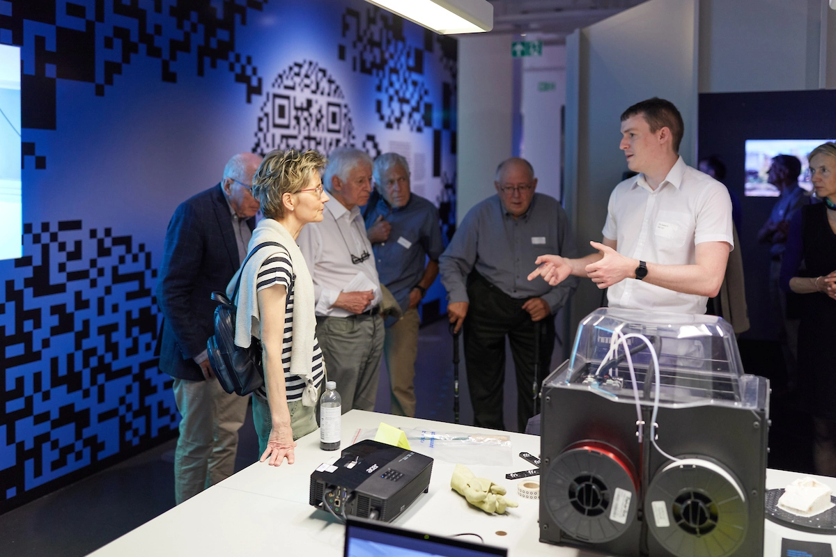 Vergangenen Mittwoch konnten sich die Ehemaligen der Universität Zürich erstmals wieder in persona zur Generalversammlung treffen. Vor dem statutarischen Teil der Veranstaltung bekamen die rund 120 Teilnehmenden Gelegenheit, die Ausstellung «Planet Digital» im Museum für Gestaltung zu besuchen. Die Ausstellung wurde in Zusammenarbeit mit dem Graduate Campus, Dr. Katharina Weikl, und der ZHdK, der Zürcher Hochschule der Künste, Damian Fopp, kuratiert und gemeinsam mit ihren Teams realisiert. Hier stossen durch den interdisziplinären Austausch innovative Forschungsteams auf kreative Köpfe aus Gestaltung und Kunst. Entstanden sind 25 Installationen, die Wissenschaft mit und über Digitalisierung mit allen Sinnen erlebbar machten.