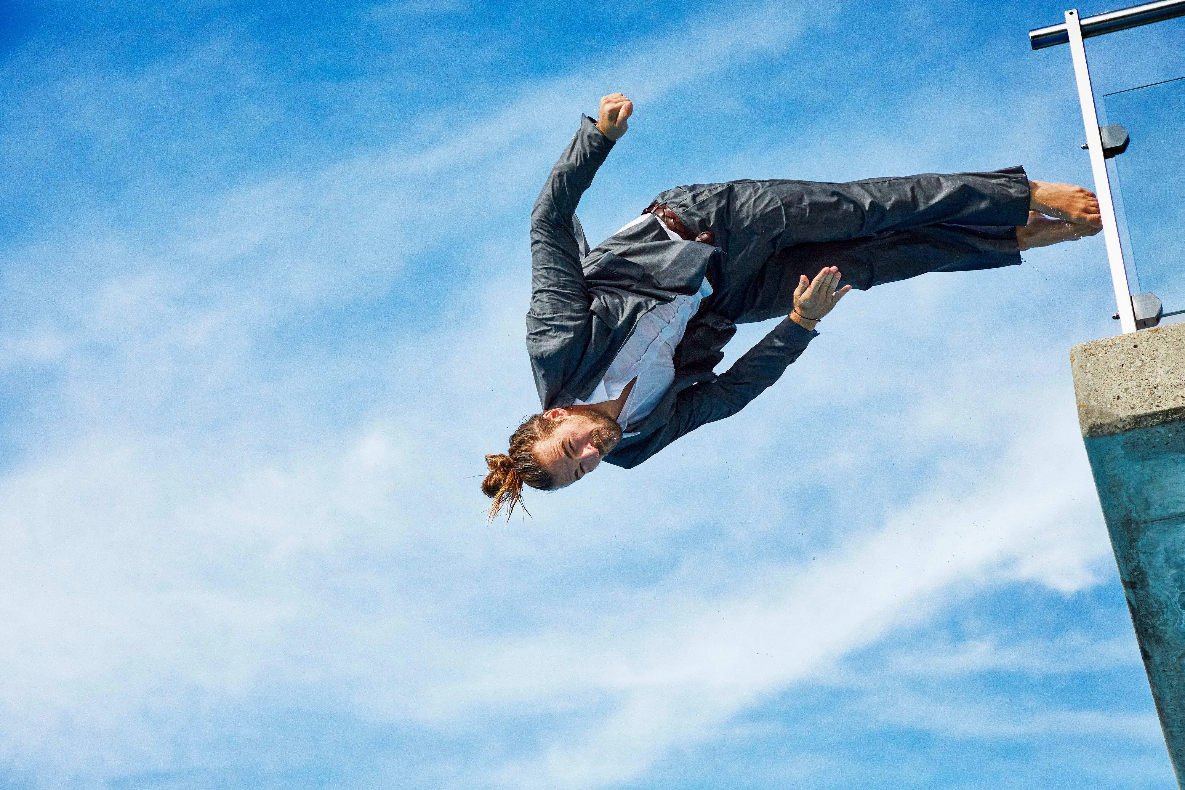 UZH-Alumnus Matthias Appenzeller ist der beste Cliff Diver der Schweiz. Und bald Anwalt. Sein erster Fall: Mit vier kletterte er aufs Zehn-Meter-Brett. Heute stürzt er sich mit 85 km/h in die Tiefe...